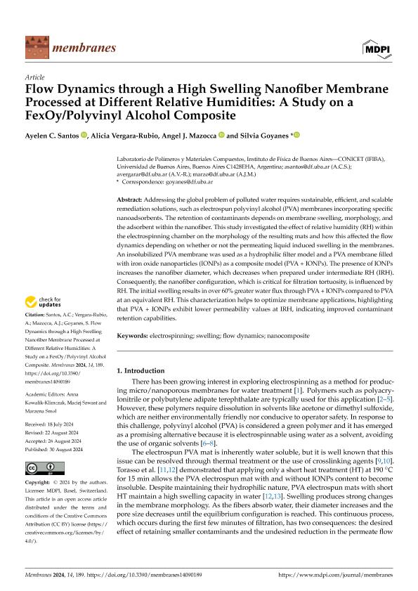 Flow Dynamics through a High Swelling Nanofiber Membrane Processed at Different Relative Humidities: A Study on a FexOy/Polyvinyl Alcohol Composite
