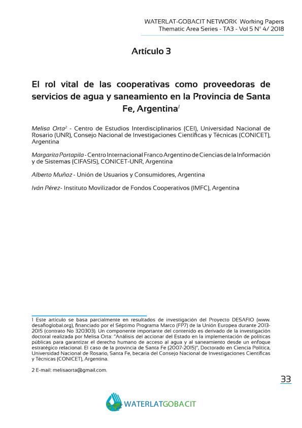 | Especialidad | Acceso democrático a Servicios de Agua y Saneamiento |